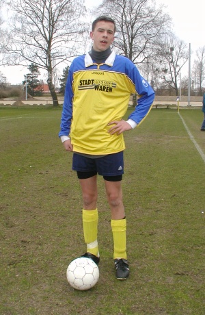 Pasewalk erschien als erwartet schwerer Gegner. Besonders die Abwehrspieler waren in der Körpergröße Waren überlegen. Gerade darum konnten die Warener B-Jugendlichen nur durch eine geschlossene Mannschaftsleistung, diesen Gegner entgegensetzen. Nach mehreren vergebenen Torchancen in der 1. Halbzeit, gelang Guido Timper in der 60' der Befreiungsschlag zum 1 : 0 (Foto des Torschützen weiter unten). Obwohl die Pasewalker in den letzten 10' nochmals mächtig Druck machten, gelang es ihnen nicht, den Anschlußtreffer zu erreichen. So war der Endstand 1 : 0 für Waren voll gerechtfertig |