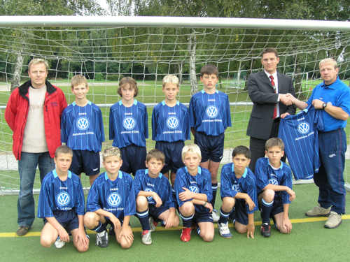 Übergabe eines neuen Trikot - Satzes vom Autohaus Kühne GmbH