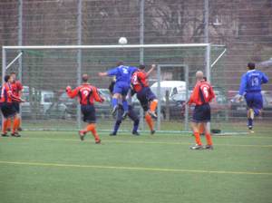 In der Kabine gab es anscheinend wenig zu sagen, denn schon früh kehrten unsere Spieler auf den Kunstrasen zurück. Angetrieben vom Oldie Jürgen Parlow versuchte man jetzt mehr Druck auf das gegnerische Tor auszuüben. Auch Enrico Mußler schaltete sich in die Offensivbemühungen mit ein, musste aber vorzeitig stark rot-gefährdet ausgewechselt werden. Nach einem direkt verwandelten Freistoß, der zum 3:0 für die Gäste führte, konnte der SV09 endlich seine Stürmer mal in Aktion bringen. Ein sauber herausgespieltes Tor durch Ralf Salwiczek nach Vorarbeit von Martin Grusdat war der Lohn der Bemühungen. Jetzt hatte der Zuschauer endlich mal das Gefühl, die Mannschaft könnte was reißen. Und wer weiß, was passiert wäre hätte Chris Bachert seinen Kopfball aus fünf Metern Entfernung im Tor unterbringen können (siehe Bild). Leider fiel anstellen des Anschlusstreffers durch einen Konter das 4:1. Das Spiel war erledigt, die Moral am Boden. Zu viele Mängel offerierte das Spiel der Warener und deswegen geht der Sieg der Plastener völlig in Ordnung. |