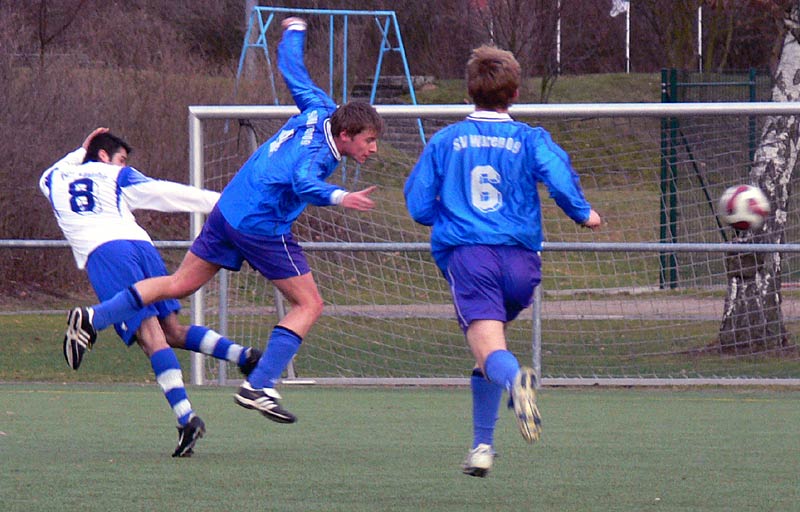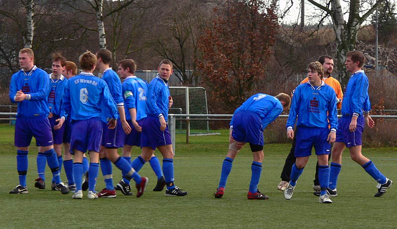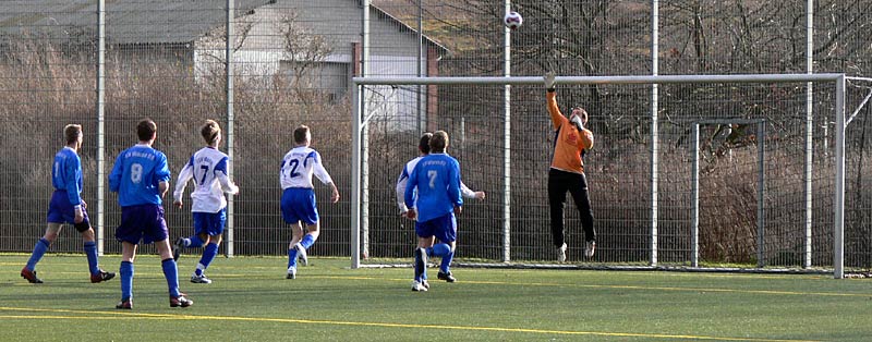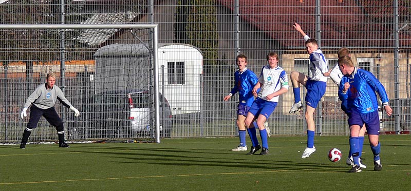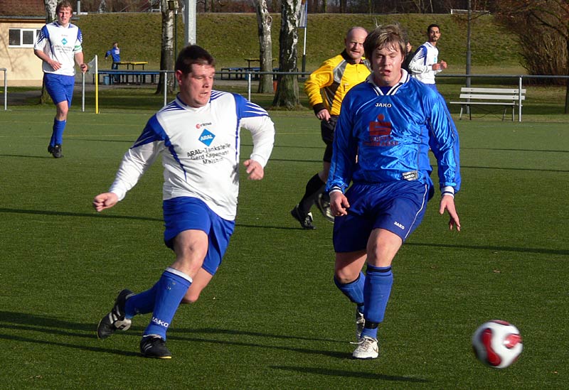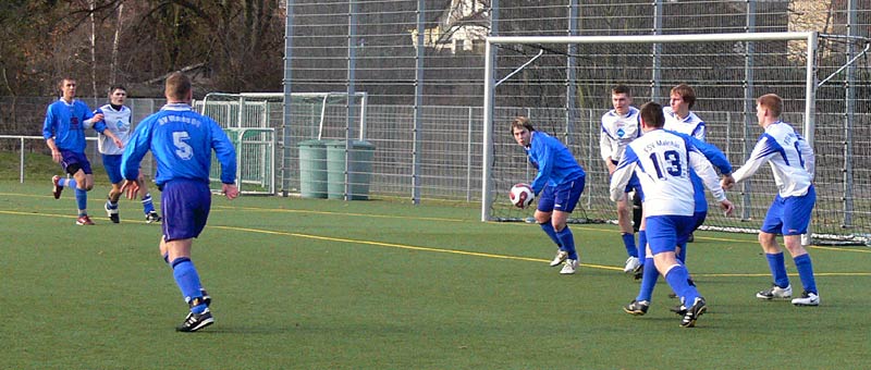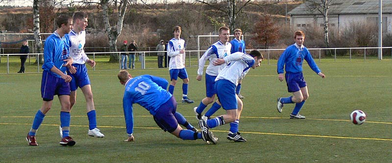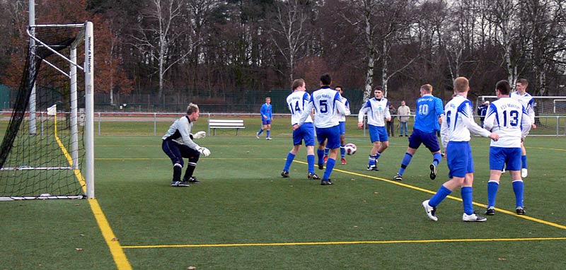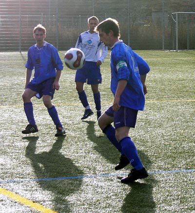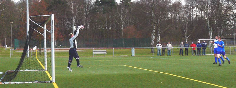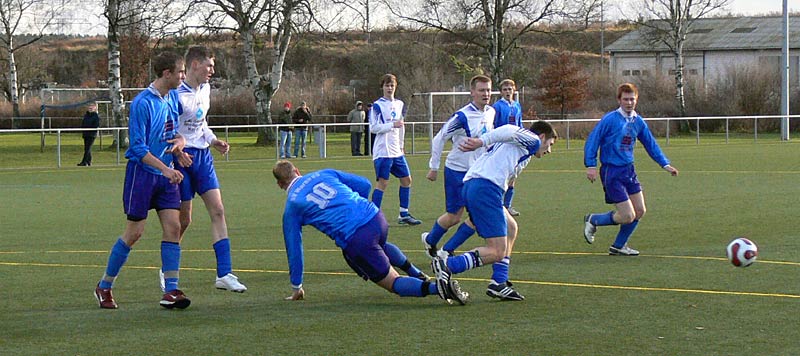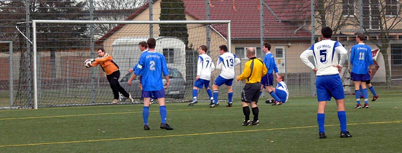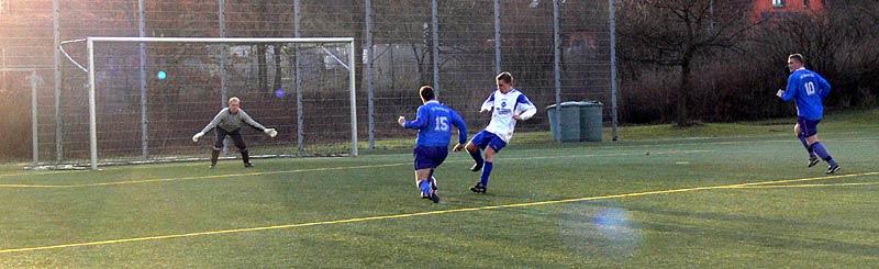 In der zweiten Halbzeit gab es ein ähnliches Bild und somit wenig Möglichkeiten. Die Gäste waren nach Standards am gefährlichsten, doch zwingend war dies nur selten. Genauso die meisten Angriffe der 09er. Aber nach einer schönen Flanke von Stephan Pomorin zog Chris Görtz aus dem Mittelfeld in die Spitze und traf mit einem scharfen Kopfball zum 1:0. Weitere Chancen, zB je ein Schuss und ein Kopfball von Robert Friske fanden den Weg nicht ins Tor. Auch kurz vor Schluss konnte ein 2-zu-1-Überzahl nicht genutzt werden. Die Defensivarbeit der Gastgeber war gut, sodass 09 in diesem eher mäßigem Spiel als Sieger vom Platz ging. |