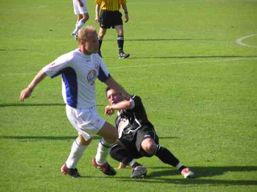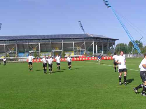 Nach der kurzen Pause drehten die Gäste dann auf und verlagerten das Spiel zunehmend in die Warener Hälfte. Deutliche Kraft- und Spielvorteile führten immer wieder zu gefährlichen Situationen vor dem Warener Tor, das jetzt von Andreas Haase gehütet wurde. Logischerweise fielen dann auch die Tore für die Gäste. Gefahr für das Sachsentor kam nur noch sporadisch auf. Ein Kopfball von Andy Purlinski (65.) wurde von der Linie gekratzt. Einen direkten Freistoß von Mariusz Raduczewski aus ziemlich spitzem Winkel musste der Leipziger Torwart allerdings zum Ehrentreffer der Warener passieren lassen. In der Schlussphase spielte zur Freude eines einsamen Sachsenfans aber nur noch der FC Sachsen, so dass das Ergebnis am Ende in Ordnung ging. |