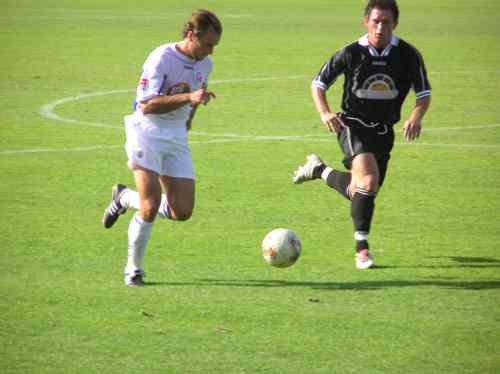 Auf dem Platz sah das anfangs allerdings ganz anders aus. Die Warener erstarrten in den ersten Minuten förmlich vor ihren prominenten Gegnern. Antonio di Salvo konnte machen, was er wollte. Weder der Torwart noch die Abwehrspieler hinderten ihn bei seinen zweifelsfrei wuchtigen Kopfbällen. Nach 25 Minuten erwachte der SV Waren 09 und knüpfte an die guten spielerischen Leistungen der letzten Begegnungen an. Ein schöner Spielzug eingeleitet von Thomas Duggert und Andy Purlinski über die rechte Seite brachte den quirligen Raduczewski in eine gute Schussposition. Der Schuss knallte leider nur an die Latte. Hansa hatte aber weiterhin das Spiel fest in der Hand, wobei die Tore fast ausschließlich aus der Lufthoheit und den nervösen Fehlabspielen aus der Abwehr heraus resultierten. Der Ball lief bei den Hanseaten recht gut, aber Tore nach gut herausgespielten Spielzügen waren nicht zu sehen. Einer der guten Angriffsaktionen der Warener konnte nur regelwidrig gestoppt werden. Matvij Nykolaychuk verwandelte den fälligen Freistoß unhaltbar für Klever aus 18 Metern in gekonnter Manier. Kurz vor der Pause hatte Thomas Duggert nach einem schönen Zuspiel von Raduczwewski die Chance den zweite Warener Treffer zu erzielen. Leider ging sein Schuss knapp am Rostocker Tor vorbei. Im Verwerten von guten Torchancen haben sich in der zweiten Halbzeit Vorbeck und Arvidson gegenseitig übertroffen. Was der kleine Publikumsliebling aus Schweden versiebt hat, geht auf keine Kuhhaut mehr, beziehungsweise auf die guten Reaktionen des in der Strafraumbeherrschung nicht so souveränen Andreas Haase im Warener Tor. In der zweiten Halbzeit zeigten dann vor allem die eingewechselten Warener Spieler nicht soviel Respekt vor dem Gegner und das Spiel wurde offener. Nach einem schönen Konter hatte Jens Buschke die Riesenchance das zweite Warener Tor zu erzielen, aber auch sein Schuss ging knapp am rechten Pfosten vorbei.