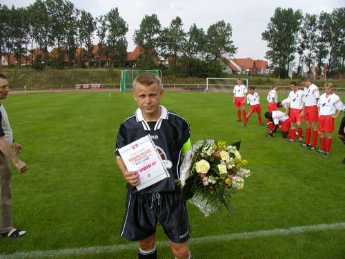 Andre Schröder nimmt vom Staffelleiter Herrn Klose die Siegerurkunde der letzten Saison entgegen |