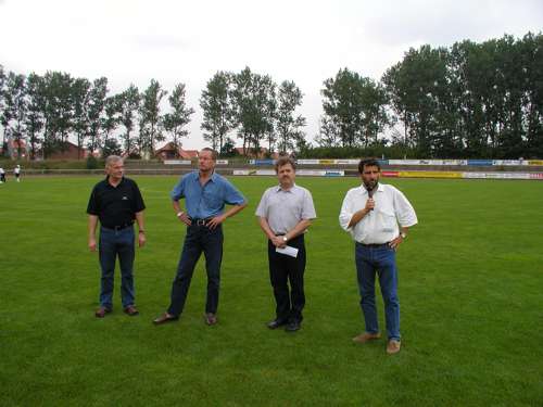 Der Landrat Jürgen Seidel, Herr Neumann der Geschäftsführer der Mecklenburger Backstuben, Fred Bethke (Vereinsvorsitzender) und der Bürgermeister Günther Rhein begrüßen die Gäste zur Saisoneröffnung |