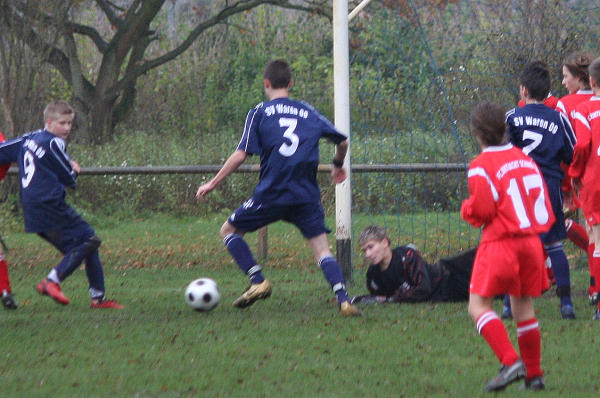 Zum endgültigen Eklat sorgte ein Pfiff in der 74.Minute also vier Minuten nach Ende der regulären Spielzeit, wo ein Schweriner Spieler frei auf unseren Torwart zuläuft und die klare Schwalbe (zirka ein-zwei Meter) neben unserem Torwart auf Elfmeter gegeben wird. Hier konnte J. Köhler die Ecke erahnen und war dran, der Ball jedoch zum 3:3 Endstand aber leider drin.