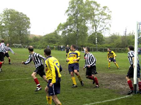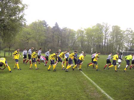 Nach der Pause das gleiche Bild. Ständige Angriffe der Zweiten. Der Ball wollte aber nicht ins Tor. Nach guten Chancen für Voß (46., 61.Min.) und Christian Lasch (52., 68. Min.) jeweils nach hervorragen Zuspielen vom glänzend aufgelegten Manuel Heinsel, war es dann Martin Grusdat in der 75. Minute vorbehalten, das vorentscheidende 3:1 zu erzielen. Nach einem schönen Solo über die linke Seite rechneten alle Zuschauer und der gegnerische Torwart mit einem Rückpass, aus spitzem Winkel schoß er den Ball aber direkt ins Tor. Weitere Chancen für Sebastian Voß und Daniel Berndt folgten. In der 86. Minute nahm sich der Routinier Torsten Martinek nicht zum ersten Mal den Ball und ging Richtung gegnerisches Tor. Seinen Rückpass brauchte Sebastian Voß nur noch über die Torlinie zu drücken. Eine ähnliche Situation, vorbereitet diesmal vom besten Spieler auf dem Platz Manuel Heinsel vollendete Sebastian Voß zum 5:1 Endstand.