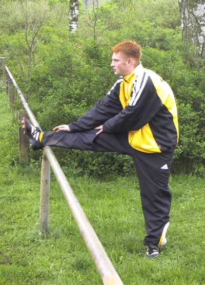 Kurz vor der Einwechselung: Rene Friske wärmt sich auf |