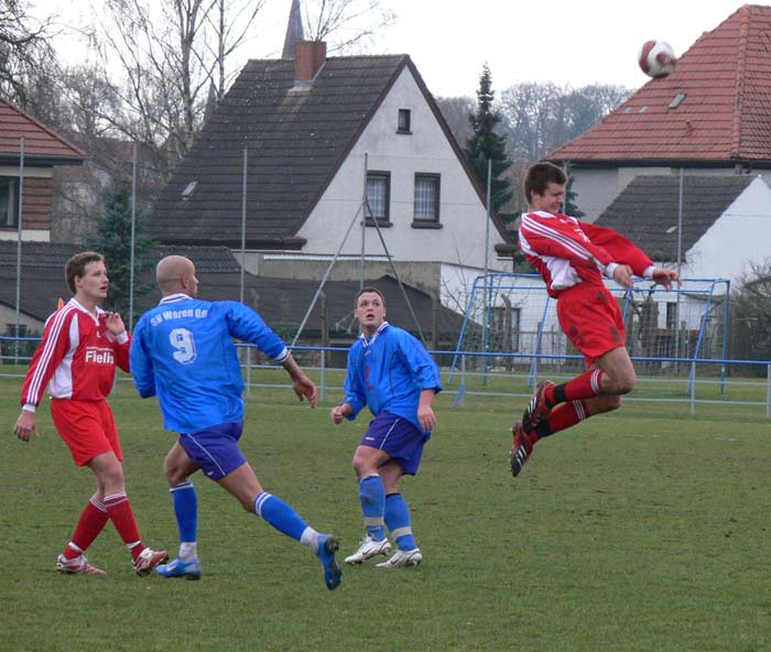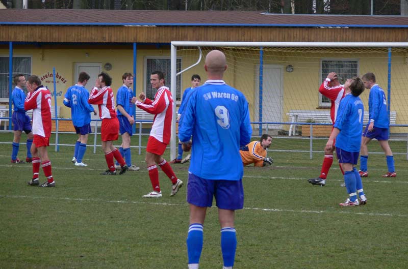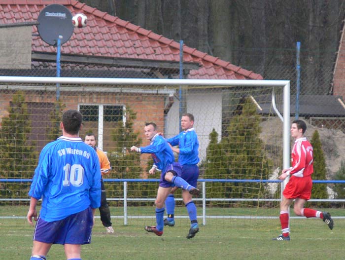 In der ersten Halbzeit war der Gast aus Waren ein wenig überlegen, doch Zählbares sprang dabei nicht heraus. Ein Abseitstor von Daniel Reichau und ein Schuss von Hannes Bauer standen einem Abseitstor der Gastgeber gegenüber.
