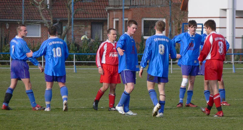 In der zweiten Hälfte wurde Malchow etwas besser beziehungsweise Waren schlechter. Doch viele gute Chancen gab es nicht, wenn dann eher für die Gastgeber. Ein Kopfball und ein Weitschuss von André Böhme waren noch die besten Chancen auf Warener Seite. Einmal hatten die 09er Glück, dass erst auf der Torlinie gerettet werden konnte und dass ein Malchower Stürmer den Nachschuss aus 4 Metern nur an die Latte schoss.