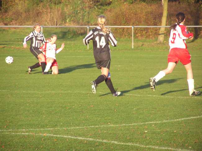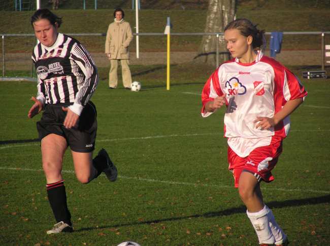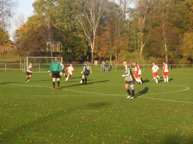 Nach der glücklichen Pausenführung gingen die Warenerinnen die zweite Halbzeit mit mehr Dampf an. Einen herrlichen Steilpass von Arian Schabe erlief sich die flinke Sabine Mergl. Aus 13 Metern knallte sie den Ball unhaltbar zum 2:0 unter die Latte. Ab jetzt stürmte nur noch 09 und schon zwei Minuten später erhöhte Claudia Perleberg nach einer schönen Kombination von Sabine Mergl über Cindy Beitz aus Nahdistanz auf 3:0. Jetzt zeigten die Warenerinnen, dass auch die Frauen attraktive Fußballkost bieten können. Der Ball lief über mehrere Stationen und die Stürmer wurden reihenweise in gute Positionen gebracht. Die größte Chance vereitelte die Lübstorfer Torfrau als sie einen Schuss von Cindy Beitz nach klugen Rückpass von Ariane Schabe per Fußabwehr noch um den Pfosten lenken konnte. In der 84. Minute erzielte Cindy Beitz dann doch noch ihr Tor. Sie verwandelte eine Rückgabe der eingewechselten Anne Brinkmann mit einem Schuss an den Innenpfosten. Zwei Minuten später brannte es erneut lichterloh im Lübstorfer Strafraum. Gleich zweimal parierte die Torfrau gute Schüsse von Cindy Beitz und Anne Brinkmann.