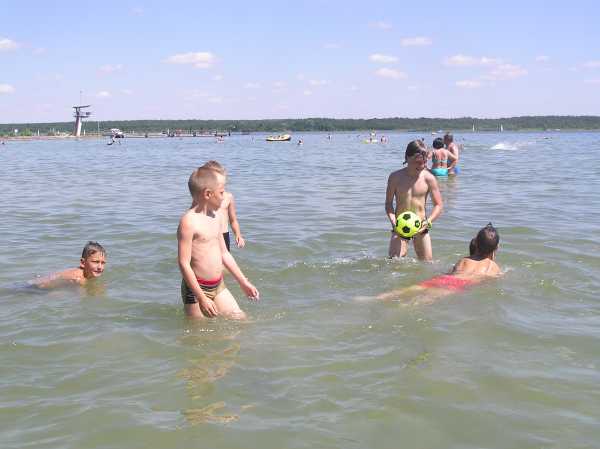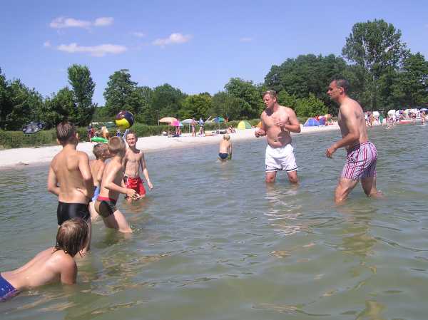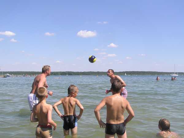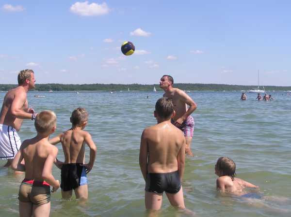 | Pünktlich um 09:00 Uhr standen sie im Müritzstadion. Die Hauptakteure sind aus München angereist: Martin Max und Daniel Hoffmann. Die Jungs waren mächtig gespannt. Kommt er denn nun wirklich, der ehemalige Torschützenkönig der Bundeliga als ihr persönlicher Trainer. Und es kommt alles noch viel besser als gedacht. Die beiden erfahrenen Haudegen lassen die Kinder den ganzen Tag nicht aus den Augen. Sie absolvieren gemeinsam die Trainingseinheiten, essen gemeinsam und haben bei dem schönen Wetter auch alle zusammen das klare Wasser der Müritz getestet. Das kann man wirklich "Martin-Max-Fußballschule" nennen. |