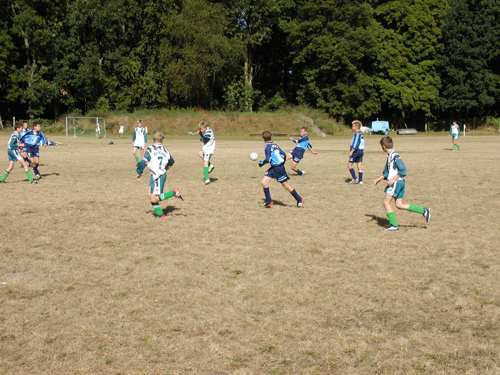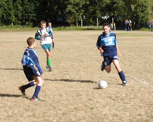 (gre) Innerhalb von einer Woche musste der SV Waren 09 das zweite Mal gegen NEVAG Neubrandeburg antreten. Der Pokalsieg fiel mit 5:1 für die Warener ziemlich deutlich aus. Das Selbstvertrauen der Mannschaft war dementsprechend groß. Die körperlichen Vorteile wurde von Anfang an in die Waagschale geworfen und es wurde mutig nach vorn gespielt. In der zweiten Minute setzte sich Martin Evert gegen zwei Gegenspieler im Strafraum durch und konnte frei vor dem Torwart stehend zum 1:0 vollenden. Gefährlich wurde es immer, wenn hohe Bälle in den Strafraum geschlagen wurden. Die großen Warener Chris Goertz, Markus Meyne, Martin Evert und vor allem Maik Mrowka versuchten immer wieder mit dem Kopf an den Ball zu kommen. So verwunderte es auch keinen, dass in der 15. Minute Chris Goertz nach einem Eckball von Markus Meyne den Ball zum 2:0 einköpfte. Aufpassen mußte die Mannschaft bei den klug vorgetragenen Kontern der Neubrandenburger, die in ihrer Spielanlage einen guten Eindruck hinterließen. Wer weiß, wie es gekommen wäre, wenn Markus Meyne in der 17. Minute den Ball nicht auf der Linie gerettet hätte. So blieb es allerdings beim 2:0 bis kurz vor der Halbzeit. Dann tankte sich Maik Mrowka ein weiteres Mal durch die gegnerische Abwehr und erzielte in der 35. Minute die 3:0 Führung. Nach der Halbzeit war die Gegenwehr der Neubrandenburger gebrochen. Die beiden kleinen Stürmer Daniel Reichau und Marten Pfahl wirbelten die Abwehr ein ums andere Mal durcheinander. Maik Mrowka ließ sich von keinem gegnerischen Spieler mehr aufhalten und Chris Goertz kämpfte im Mittelfeld um jeden Ball. Es war nur noch eine Frage der Zeit, wann weitere Treffer fallen würden. Diese erzielten dann die besten Spieler in der zweiten Halbzeit, Maik Mrowka (mit dem Kopf nach einem Eckball) und Tobias Reichau sowie Marten Pfahl aus dem Spiel heraus. Mit dem 6:0 waren die Neubrandenburger im Endeffekt noch gut bedient. Das Warener Spiel zeichnete sich vor allem durch die Kampfkraft aus, wenn die Trainer es schaffen, einen klare spielerische Linie durchzusetzen, kann die Mannschaft sicher gegen jeden Gegner mithalten. |