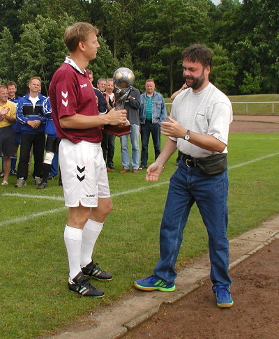 überreicht den Pokal an Rainer Ernst vom BFC.