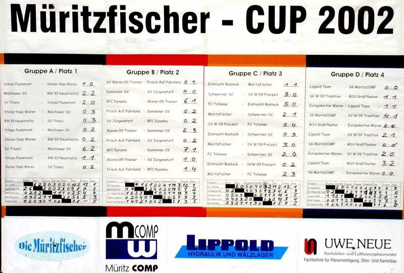 Die Ergebnisse in den Gruppen Müritzfischercup 2002