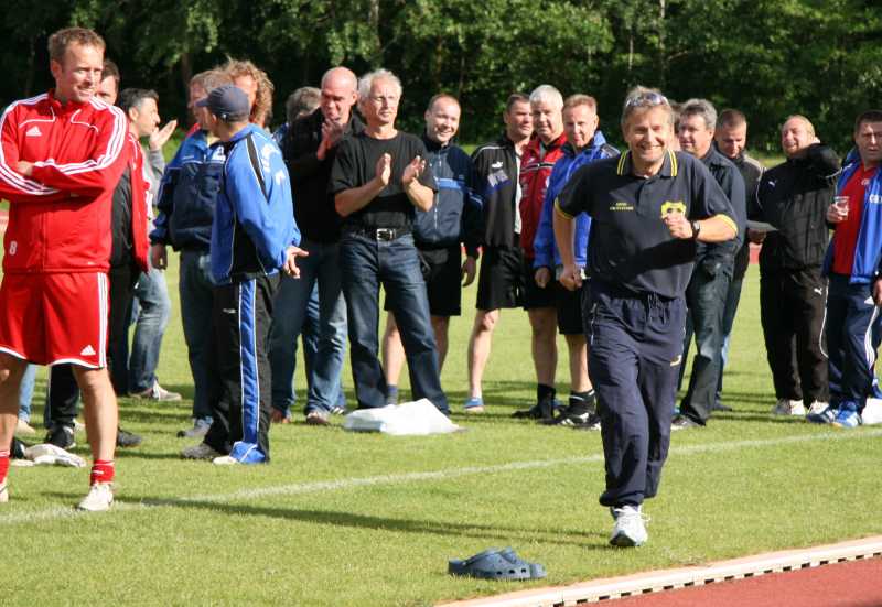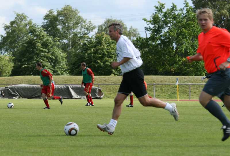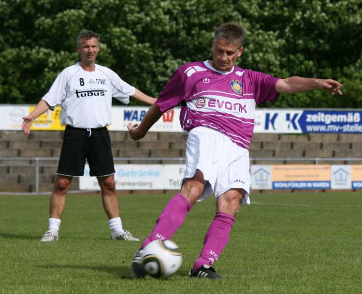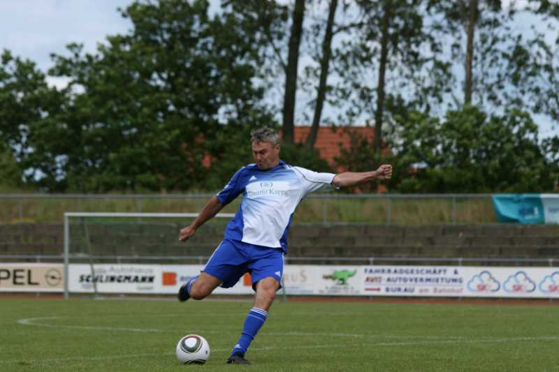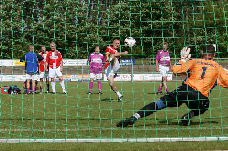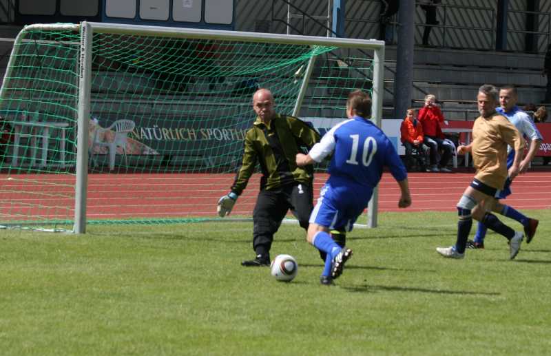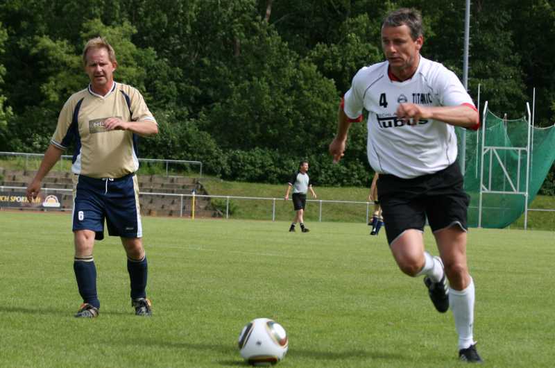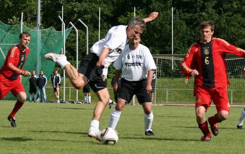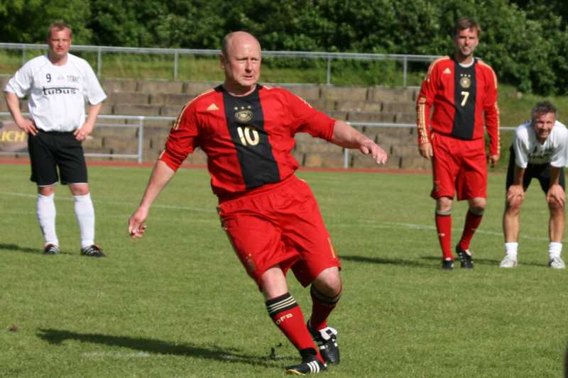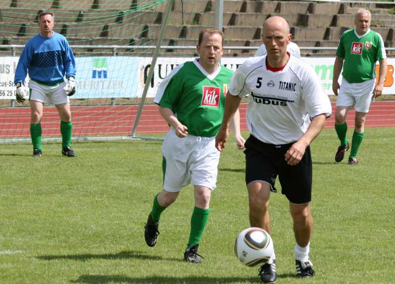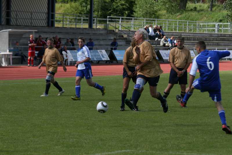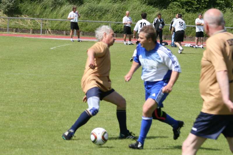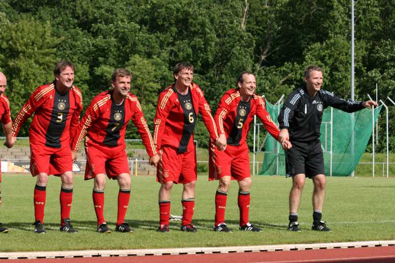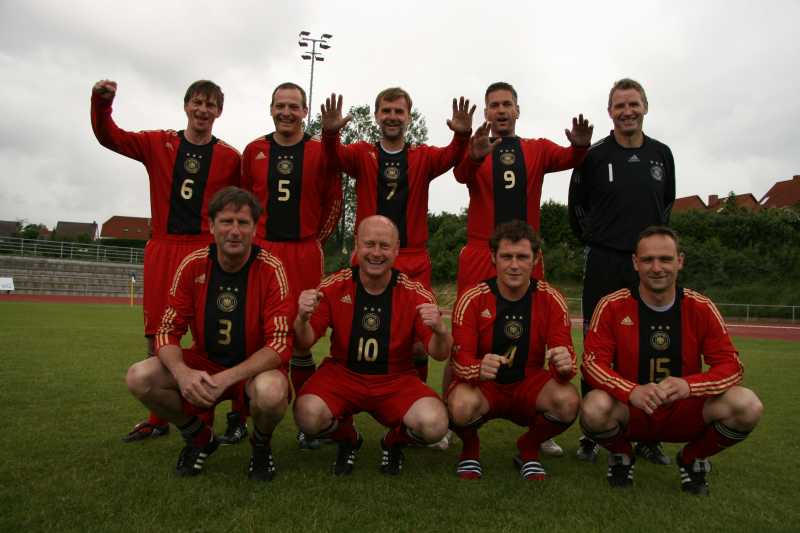 In der Gruppe B war man gespannt auf den Auftritt des Neulings "Berliner Kicker". Peter Kaehlitz' Auswahl von ehemaligen Spitzenspielern setzte sich in der Gruppe ohne Gegentor problemlos an die Spitze. 12 Punkte und 15:0 Tore: Eine Bilanz, die sich sehen lassen kann.