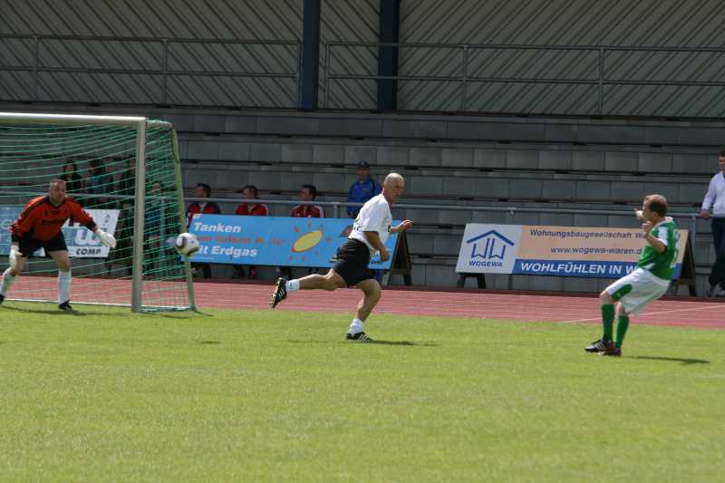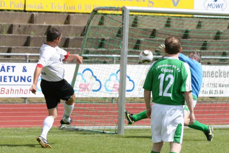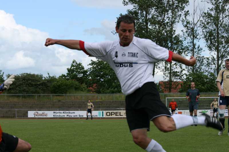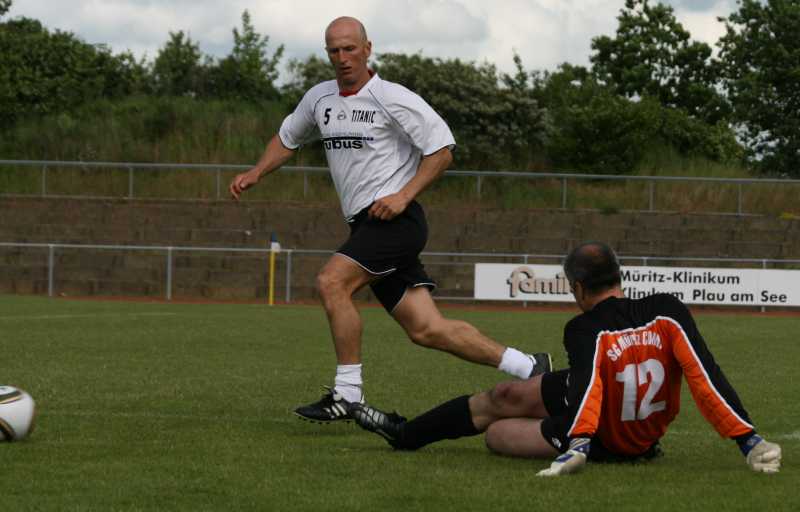 Im zweiten Semifinale kam es zum Aufeinandertreffen der beiden Vorjahresfinalisten. Lok Leipzig musste den verletzungsbedingten Ausfall von Frank Baum verkraften, hatte aber mit dem bereits 61jährigen Klaus Havenstein und Dieter Kühn zwei ehemalige Torschützenkönige der DDR-Oberliga in seinen Reihen, denen man ihr Alter überhaupt nicht angesehen hat. Wie in besten Zeiten streichelten sie den Ball. Beim SV Titanic versuchten vor allem Hilmar Weilandt und Jens Dowe, das Spiel in Schwung zu bringen. Nach einer Viertelstunde stand es trotz alledem 0:0 und ein Neunmeterschießen musste die Entscheidung bringen. Diesmal setzten sich die Rostocker mit 4:3 gegen den Titelverteidiger durch.