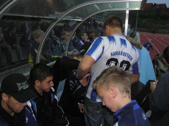 Insgesamt war die Veranstaltung wieder eine absolute Werbung für unseren Bundesligaclub. Alle Hansa-Angehörige, zu denen nicht nur die Mannschaft, sondern auch die im Hintergund agierenden Verantwortlichen, wie heute z.B. Axel Schulz oder Adalbert Skambraks, stellten sich zu jeder Zeit ihren Fans, die natürlich im kleinen und nicht abgeschirmten Müritzstadion ziemlich nah an ihren Lieblingen sein wollten und konnten.
