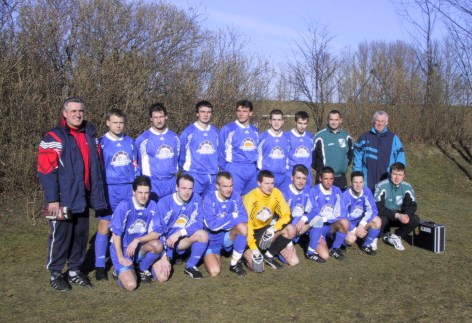 v.l.n.r: stehend: Ulrich Schulze (Trainer), Andre Schröder, Thomas Dusek, Serhji Bohorodichenko, Steffen Ulbrich, Nico Schwerin, Jörg Hennings, Bernd Kowalzyk (Mannschaftsleiter), Erwin Schieweck (Masseur)