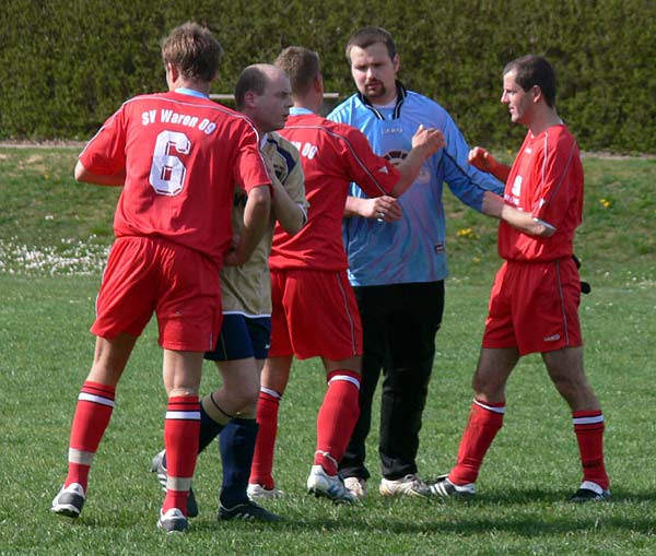 Von Beginn an machte der Gast aus Waren klar, wer der Favorit in diesem Spiel war. Spielerisch steigerte man sich deutlich im Vergleich zum Mirow-Spiel. So spielte man sich auch einige Chancen heraus. Durke, Reichau oder Döscher nutzten gute Einschussmöglichkeiten nicht. Sarow war zwar bemüht, konnte aber nur bei Standards gefährlich werden, dann aber richtig. Die Zuordnung stimmte nicht und dem Gegner wurde einfach zu viel Platz gelassen. So fiel in der 33.Minute das unverdiente 1:0 für Sarow. Eine halbhohe Ecke flog durch den ganzen Strafraum und am hinteren Pfosten standen 3 Sarower frei und einer von diesen schob sicher zur Führung ein. Waren zeigte aber sofort eine Reaktion und kam durch einen Schuss von Marko Siegfried nur eine Minute später zum Ausgleich. 09 versuchte weiter mit Kombinationen zum Erfolg zu kommen.