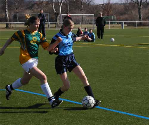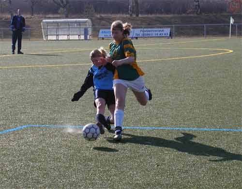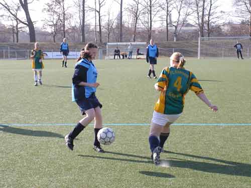An diesem Spieltag empfingen die Mädchen des SV Waren 09 die Gäste vom FSV 02 Schwerin. Diese traten in Unterzahl an, welches eigentlich einen Pflichtsieg zur Aufgabe machte, zumal der SV Waren 09 noch eine Rechnung (Pokal) mit den Gästen aus der Landeshauptstadt offen hatte. Anscheinend wirkte die Überzahl jedoch eher hemmend auf die Gastgeberinnen. Eine geordnetes Spiel kam nicht zustande. Zu oft wurden die Außenpositionen vernachlässigt. So machte man es den Gästen leicht, die sporadischen Angriffe abzuwehren und seinerseits gefährliche Konter zu fahren. Torhüterin Cindy Hackbusch musste mehrmals mit guten Paraden einen Rückstand verhindern. Wie es gehen kann, zeigte der einzige gute Angriff in der 21. Minute. Nach Vorarbeit über linke Außenbahn mit Sabrina Genz und Isabel Barner konnte Dana Lekat freistehend vor dem Tor die erlösende 1:0 Führung erzielen. Allerdings wirkte sich das nicht auf die Spielweise der Warenerinnen aus. Nach dem Seitenwechsel versuchten die Gastgeberinnen, den Spielaufbau teilweise auf die Außenbahnen zu verlagern. Leider wurde hierbei die Deckung vernachlässigt. Die beste Schwerinerin am heutigen Tage, Sarah Richter, erzielte aus einem Konter heraus den Ausgleich. Die Warener Mädchen drückten die Gäste immer wieder zurück in die eigene Hälfte und erspielten sich einige gute Chancen. Beim Torabschluß blieben sie allerdings harmlos. Am Ende entführten die aufopferungsvoll kämpfenden Gäste aus Schwerin verdient einen Punkt. Dieser Punktverlust ist um so ärgerlicher, da zur gleichen Zeit die Neubrandenburgerinnen in Spornitz nicht über ein Unentschieden hinaus kamen. Ein Sieg gegen Schwerin hätte die B/C-Juniorinnen wieder in den Kampf um die Meisterschaft zurückgebracht. So muß man sich nun um die Verteidigung des dritten Platzes bemühen. |