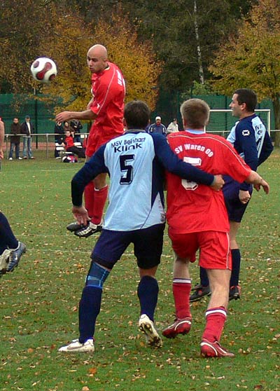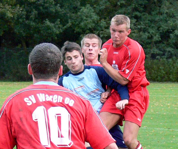 Nach der letztwöchigen überzeugendem Sieg im Pokal, dachte wohl das gesamte Team, dass das Kreisderby eine einfache Sache werden sollte. Aber dem war nicht so, Klink zeigte mehr Einsatz und Engagement und stand auch recht sicher in der Abwehr. Die schnellen Angriffe der Gäste bereiteten den 09ern immer wieder Probleme. So hätte der Klinker Held auch schon, frei aufs Tor zulaufend, zum 0:1 einschießen können. Weitere Gästechancen blieben ebenfalls ungenutzt. Die größte Warener Möglichkeit in der ersten Hälfte gab es, als Pierre Hommel links durchgestartet war, entweder auf Tor hätte schießen oder einen der beiden mitlaufenden Mitspieler freispielen können. Doch stattdessen spielte er den Ball dem einzig gut postierten Abwehrspieler in die Füße, sodass das 1:0 nicht fiel.