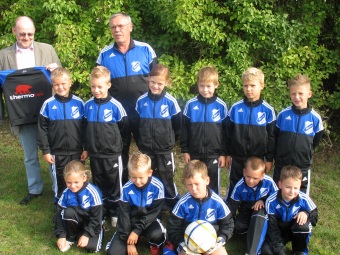 Hintere Reihe v. li.: Dorina Timm, Firmenchef Christian Kloke, Trainer Gerd Walter;