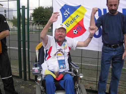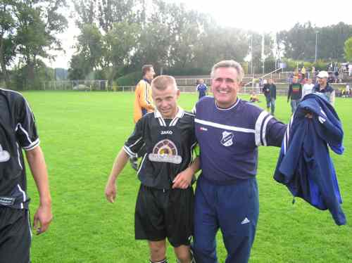 Unser Team fuhr als Tabellenzweiter nach Neubrandenburg und wollte den von der Zahl der Anhänger gleichmäßig verteilten Zuschauern zeigen, dass dies keine Eintagsfliege sein sollte. In einem für Verbandsligaverhältnisse außerordentlich schnellen und ansehnlichen Spiel übernahm der Gast gleich die Initiative. Mirko Löper, der die Überwachung von Mario Kusturin übernahm, beschränke sich keineswegs nur auf die Defensive. In der 4. Minute konnte er bei einem seiner Vorstöße nur durch ein Foul gebremst werden. Der Druck in den ersten Minuten führte auch zum 1:0 durch Andre Schröder, dessen Schuss der gute Neubrandenburger Torwart erst hinter der Linie zu fassen bekam. In den nächsten Minuten ging es dann auf und ab. Nykolaychuk und Schröder behinderten sich nach schönem Steilpass von Raduschewski gegenseitig, eine Eingabe vom sehr stark spielenden Andy Purlinski konnte nicht verwertet werden und auf der Gegenseite rettete Nico Schwerin gegen den jederzeit gefährlichen Kusturin. Als Andre Schröder dann zweimal allein auf den Torwart zulaufend nicht verwandeln konnte und Thomas Duggert gegen das Gebälk köpfte, hatte Kusturin die Chance auf der Gegenseite. Aber Mirko Löper und Andreas Haase konnten im letzten Moment klären. Danach hatten die Warener mehrfach gute Gelegenheiten den Vorsprung auszubauen. Es blieb aber beim aus Warener Sicht mageren 1:0 zur Pause. Nach dem Wechsel kamen die Neubrandenburger stärker auf und versuchten dem Spiel eine Wende zu geben, wobei klare Torchancen kaum erspielt werden konnten. Die boten sich im Konterspiel wieder den Warenern. Bis eine Viertelstunde vor Schluss konnten auch die besten Chancen von Schröder, Duggert, Raduschewski und Zühlke nicht genutzt werden. Es dauerte bis zur 74. Minute als Andre Schröder in eine Rückgabe des Gegners spritzte und diesmal dem Torwart keine Chance ließ. Das Spiel im Griff und 2:0 in Führung, das Ding schien gelaufen. Dann kam die 80. Minute, in der die zahlreichen Warener Anhänger sehr erbost reagierten. Ein Steilpass auf Mario Kusturin brachte den Anschlusstreffer und viele Warener Zuschauer und Spieler sahen den Torschützen klar im Abseits. Aus Sicht des Autors sah das nicht so aus. Mirko Löper hob das Abseits auf und Kusturin war nicht mehr zu halten. Nach dem völlig unnötigen Reklamieren zeigte die Mannschaft aber wieder Format. Sie gab das Heft des Handelns nicht aus der Hand und spielte weiter auf Sieg. Als Andre Schröder drei Minuten vor dem Schluss das 3:1 markierte, war das Spiel dann völlig verdient zu Gunsten der Warener gelaufen. Überschwänglicher Jubel bei Spielern, Trainern und Anhängern nach dem Spiel. In dieser Verfassung wird es jeder Gegner gegen den SV W 09 schwer haben. Glückwunsch dem Team für diese starke Leistung. |