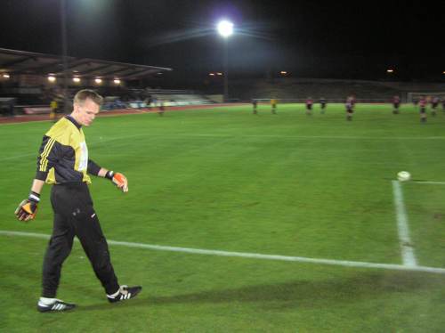 Ca. 500 Zuschauer pilgerten bei herrlichem Herbstwetter am Freitag Abend zur Flutlichtpremiere ins Müritzstadion, dessen Rasen sich wieder in einem passablen Zustand befindet. Nachdem Stadionsprecher Wolfgang Burau sein Interview mit den beiden erfahrenen Trainern Gernot Alms und Uli Schulze beendet hatte und die Cheerleader die Zuschauer bei den kühlen Temperaturen auf Schwung gebracht hatten, konnte der gute Schiedsrichter das Spiel anpfeifen.