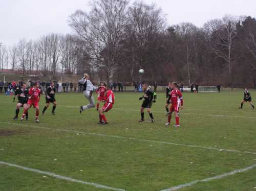 Auf Grund der Witterung musste das erste Spiel der Rückrunde auf Platz 2 im Müritzstadion ausgetragen werden. Mit dem FC Eintracht Schwerin kam ein Gegner, den man in der Hinrunde deutlich bezwungen hatte. So gingen die Spieler auch mit einer gehörigen Portion von Selbstüberschätzung in das Spiel. Lässigkeiten nicht nur in der Abwehr (Purlinski, Senkpiehl) ließen gar keinen Spielfluss zu. Außer einem 20-Meter Schuss von Thomas Duggert zeichnete sich das schlechteste Spiel der Warener Elf nach dem Aufstieg in die Verbandsliga ab. Und zu allem Überfluss war der erste Ball auf das Tor vom neuen Torhüter Mariusz Grzanka nach einer Ecke auch gleich ein Volltreffer, dem in der 37. Minute die nächste Riesenchance für die Schweriner durch Tom Böttcher folgte. Er versäumte es allerdings völlig freistehend aus 10 Metern Entfernung auf 2:0 zu erhöhen.
