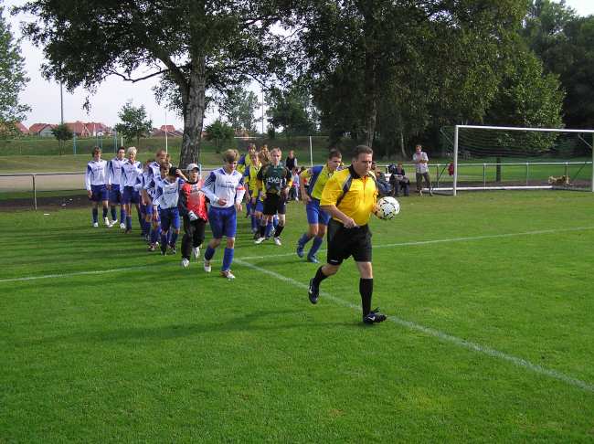 | Unsere Mannschaft wollte sich für die Niederlage im Punktspiel revanchieren. Dies glückte leider nicht. Gut vorbereitet gingen die Jungs ihre Aufgabe voll offensiv an. dabei sprang auch in der 3. Min. schon unser Führungstreffer heraus. Markus Saß setzte sich hervorragend in halbrechter Angriffsposition durch und vollendete mit strammen Vollspannschuß. das gab weiteren Auftrieb. Altentreptow wurde weiterhin in die eigene Hälfte gedrängt. Da es im Strafraum immer enger zuging, wurden Distanzschüsse auf nassem Rasen leider viel zu wenig genutzt, um das 2. tor nachzulegen. Bei einem Gegenkonter kam es tu einem Eckstoß, den der Gegner per Kopf zum Ausgleich nutzte. Ein Stellungsfehler unserer inneren Abwehr gegen die großgewachsenen Angreifer. Nach dem Wechsle wurde unser offensives Spiel nach mehreren Bemühungen endlich belohnt. Wiederum setzte sich Markus Saß auf der rechten Seite erfolgreich durch und seine präzise Eingabe konnte Kapitän Dominic Arlt zur erneuten Führung nutzen. Danach sah es ganz nach erstem Sieg aus. Um das Ergebnis zu halten, fehlt unserer neuen Truppe noch die Cleverneß bzw. Abgeklärtheit. Noch werden zu viele individuelle Fehler gemacht, schon im Mittelfeld. So kam Altentreptow zum Ausgleich. Chancen, wieder in Führung zu gehen,gab es für uns weiterhin ein paar Mal, aber immer fehlte der berühmte eine Schritt. Wie so oft im Fußball rächen sich entgangene Chancen zum eigenen Nachteil. Ein Freistoß, der eigentlich keiner war, für den Gegner löste das Dilemma aus. Eigentlich war der Ball schon aus der Gefahrenzone, doch es kam zu einer ungeschickten Abwehraktion noch im Strafraumbereich, die den Schiri aus Jürgenstorf veranlaßte, Elfmeter zu pfeifen. Der wurde prompt verwandelt ohne Abwehrchance und damit leider unglücklich die Niederlage besiegelt. |