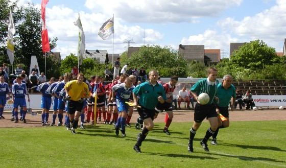 Beide Mannschaften laufen zum Spiel auf. Noch ist der Ausgang ungewiß. |