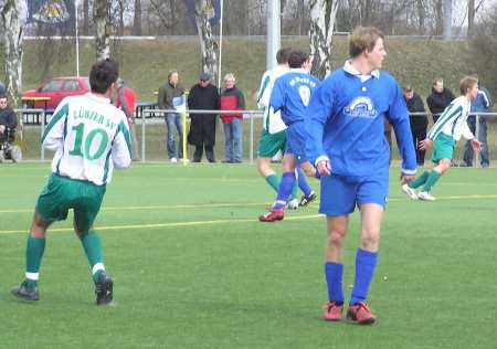 Bei allem Einsatz heftete den Warenern zunächst das Schicksal des Verlierers an den Fersen. Der Ball wollte einfach nicht die gegnerische Torlinie überschreiten. Nach René Drabners Weitschuss-Warnsignal in der ersten Minute passte Daniel Reichau auf den gestarteten Marcin Flejter, dem der Lübzer Torwart im letzten Moment den Ball vom Fuß spitzelte. In der Abwehr schlichen sich einige Unkonzentriertheiten ein, die der Gegner am heutigen Tage allerdings nicht ausnutzen konnte.
