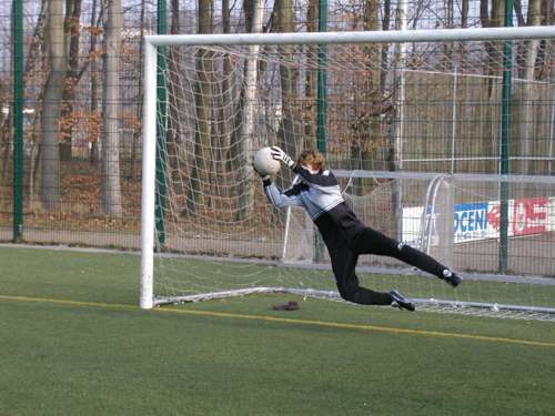 (Die)Nach einigen Schwierigkeiten bei der Abfahrt nach Greifswald wegen der Zeitumstellung, waren die Jungs des SV 09 zu Beginn aber hellwach. In den ersten zehn Minuten erspielten sich unsere Jungs fast im Minutentakt hochkarätige Chancen. In dieser Phase des Spiels hatte man den Eindruck als wollten unsere Jungs ein Feuerwerk in Form von Toren abbrennen. Gleich in der ersten Minute hatte Schwager die Möglichkeit nach gutem Zuspiel von Ungewitter den Ball im Tor des Gegners zu versenken, aber sein Schuss ging knapp über das Gehäuse. In der 2 min. verfehlte ein Kopfball von Görtz nach Ecke von Schwager ebenfalls knapp sein Ziel. Der gleiche Spieler traf in der 4 min. nach guter Vorarbeit von Ungewitter nur die Latte. In der 7 min. kam erneut ein Angriff über die rechte Seite. Nach einer guten Flanke von Ungewitter war es Tobias Reichau, der ohne Mühe zur Führung vollendete. In der weiteren Folge des Spiels, immer wieder das gleiche Spiel. Die Mannschaft des SV Waren bestürmte das Tor der Greifswalder und die verteidigten es. In dieser Phase des Spiels versuchten die Warener Jungs das nächste Tor mit der Brechstange zu erzielen. In der 20 min ging einer etwas verunglückter Schuss von Evert nach Pass von Reichau nur knapp am Tor vorbei. Nur 2 min. später zog Meyne dann aus 16 Meter ab, den der Torwart der Greifswalder gut parierte. In der 31 min. war es dann Schwager der nach Flanke von Ungewitter und Zuspiel von Pfahl zur 2:0 Führung traf. Kurz vor der Halbzeit noch zwei gute Möglichkeiten für die Jungs des SV Waren 09. Zunächst zog Mrowka nach einem Solo aus ca. 16 Meter ab, den Ball konnte der Torwart nur zur Ecke klären. Dann war es wiederum Görtz, der nach Ecke von Schwager das Ziel knapp verfehlte. Aufgrund der Überlegenheit in der ersten Halbzeit, konnte man die zweite Halbzeit ruhig angehen und etwas probieren. Dies hatte zur Folge, dass die Mannschaft taktisch etwas umgestellt wurde. So spielte Mrowka nun Mittelstürmer. In der zweiten Halbzeit das gleiche Bild. Die Mannschaft des SV Waren stürmte und die Mannschaft des SSV G.-S. Greifswald verteidigte. Nach einem Freistoß von der linken Seite und einem Pass von Ungewitter, war es Schwager, der in der 38 min. das Gehäuse knapp verfehlte. Auch nun ließen weitere Chancen nicht auf sich warten. In der 42 min. war es Romanik der nach einem starkem Solo und einem guten Schuss das Tor knapp verfehlte. In der 45 min. verfehlte ein Schuss von Evert nach einer Ecke von Schwager knapp das Tor. Nach einem Zuspiel von Pfahl in der 48 min. auf Evert, wurde dessen Schuss zur Ecke gelenkt. Diese Ecke trat wiederum Schwager und Görtz traf mit einem schulmäßigen Kopfball zum 3:0. Nach einen Solo von der linken Seite traf Evert in der 49 min. zur 4:0-Führung. Die Heimmannschaft, die bis dahin noch geringe Gegenwehr zeigte, ergab sich nun fast kampflos. Eine echte Tormöglichkeit blieb ihr aber am heutigen Tage gegen eine in jeder Hinsicht überzeugende Warener Mannschaft versagt. Die Warener Mannschaft begann nun auch einmal mehr spielerisch etwas zuprobieren. Dabei wurden Spielzüge probiert, die sonst nicht einmal im Training studiert werden. Nach einer Ecke von Görtz in der 60 min. war es dann Ungewitter, der mit der Hacke auf 5:0 erhöhte. Dies sollte aber noch nicht der Schlusspunkt sein. In der 66 min. dann zwei Einwechselspieler unter sich. Nach Solo von Mahlow und Zuspiel auf Penak, vollendete dieser mit einem straffen Schuss von der rechten Seite ins lange Eck zum 6:0-Endstand. Dieser Sieg geht auch in dieser Höhe voll in Ordnung, wobei die Greifswalder mit der Höhe noch zufrieden sein konnten. Denn wenn die Warener Jungs alle 100%-igen Chancen genutzt hätten, wäre der Sieg noch höher ausgefallen. Aber die Trainer können mit dieser Leistung zufrieden sein und hoffnungsvoll in die Zukunft blicken. Einziger Wehrmutstropfen des Warener Spiels, war die Verletzung von Maik Mrowka kurz vor Ende des Spiels, als er nach einem Zusammenprall mit dem Torwart der Greifswalder sich vermutlich eine Bänderdehnung zuzog. Von dieser Stelle gute Besserung und eine schnelle Rückkehr zur Mannschaft.