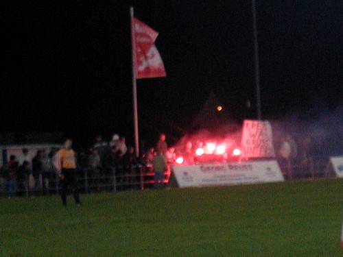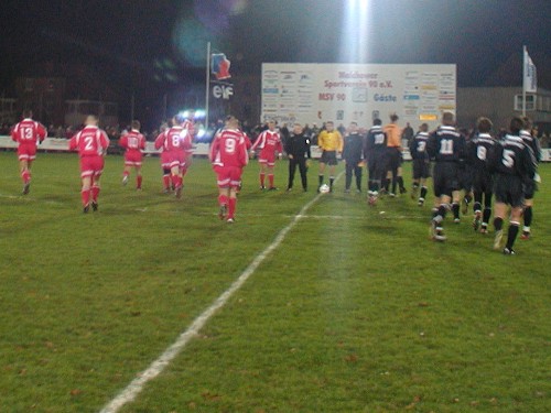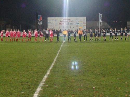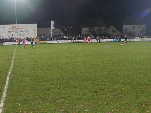 (gre)Zuerst einmal ein großer Dank an die vielen Zuschauer, die aus Waren und Umgebung anreisten und unsere Mannschaft toll unterstützt haben. Besonders beeindruckend waren die leuchtenden Fackeln (die Bemühungen von Schuli Ulz - siehe Gästebuch - waren erfolgreich) unter dem ohnehin schon imposanten Feeling eines Flutlichtspiels mit über 1250 Zuschauern. Wo gibt es das schon in dieser Liga. Das Spiel musste mit einer Viertelstunde Verspätung angepfiffen werden, weil sich an den Kassen lange Schlangen gebildet hatten.