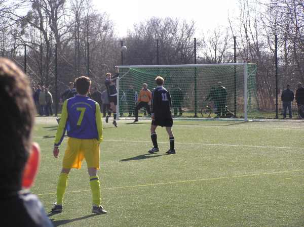 Den Neubrandenburgern stand das Wasser bis zum Hals. Nur zwei Punkte von einem Abstiegsplatz entfernt, musste man heute unbedingt punkten, um nicht vollends in das Abstiegsgeschehen einzugreifen. Entsprechend motiviert kaufte man den in der Anfangsphase sehr zurückhaltend agierenden Warenern deutlich den Schneid ab. Mario Kusturin zog wie in besten Zeiten gen Warener Tor. Schon in der vierten Minute hatte Thomas Vierow im Warener Kasten Glück als Kusturin Nico Schwerin überlief, aber aus günstiger Position am langen Eck vorbeischoss. Dann hatte der FC das nötige Glück beim Führungstreffer. René Drabner spitzelte eine flache Eingabe von rechts unglücklich ins eigene Tor. In der 15. Minute hatte 09 eine gute Chance den Ausgleich zu erzielen als Guido Timper nach einem abgeblockten Schuss von Nico Schwerin völlig frei den Ball bekam. Er schoss aber aus 12 Metern weit über das Tor. Die gleiche Schussposition hatte Christian Radecke nach einem Eckball, er drosch den Ball zum 2:0 unter die Latte. Das Spiel wogte jetzt hin und her, wobei den Neubrandenburgern das eingenommene Konterspiel sehr behagte. Erst versiebte René Röpcke eine gute Einschusschance, dann lief Mario Kusturin allein auf Thomas Vierow zu, der diesmal die Nerven behielt und den Schuss vom Neubrandenburger Stürmer zur Ecke lenkte.