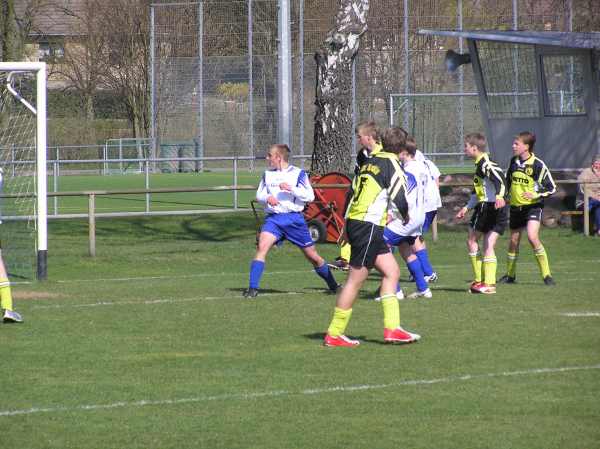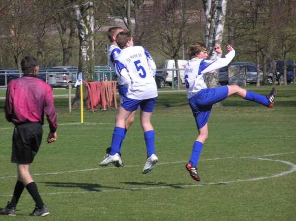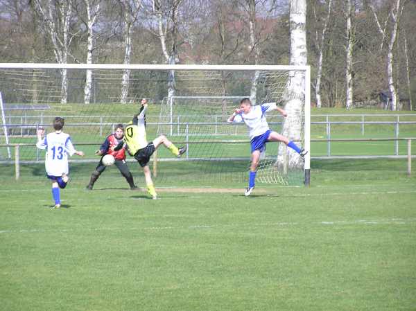 Trotz guter Vorsätze wurde das Spiel aber mit wenig Selbstvertrauen begonnen. Fast ängstlich wurde in die Zweikämpfe gegangen, so dass es immer wieder zu unnötigen Ballverlusten im Mittelfeld kam. Heß und Schubert hatten heute nicht ihren besten Tag und brachten Halliant als Abwehrchef immer wieder in arge Bedrängnis. Es dauerte bis Mitte der ersten Halbzeit, als endlich gute Möglichkeiten herausgearbeitet und die Abwehr entlastet wurde. In der 25. Min. war es Sugint, der die Möglichkeit zum Führungstreffer hatte. Sein schöner Kopfball wurde aber von der Linie gekratzt. Der abgewehrte Ball kam zu Bommer, der freistehend am leeren Tor vorbei schoss. Trotz dieser guten Chancen zog keine spielerische Sicherheit ein und es mussten wiederholt gefährliche Überzahlangriffe des Gegners abgewehrt werden. In der letzten Minute der ersten Halbzeit lief ein Gegenspieler im Strafraum in unseren letzten Mann hinein, ließ sich drei Meter weiter fallen und bekam vom unsicher agierenden Schiedsrichter, zum Erstaunen aller Beobachter, einen Elfmeter „ geschenkt´´. Obwohl Torwart Pappisch noch mit den Fingerspitzen am Ball war, konnte er den Rückstand nicht verhindern.