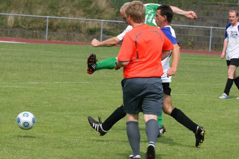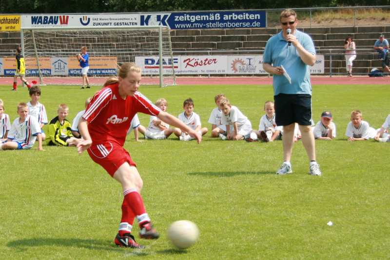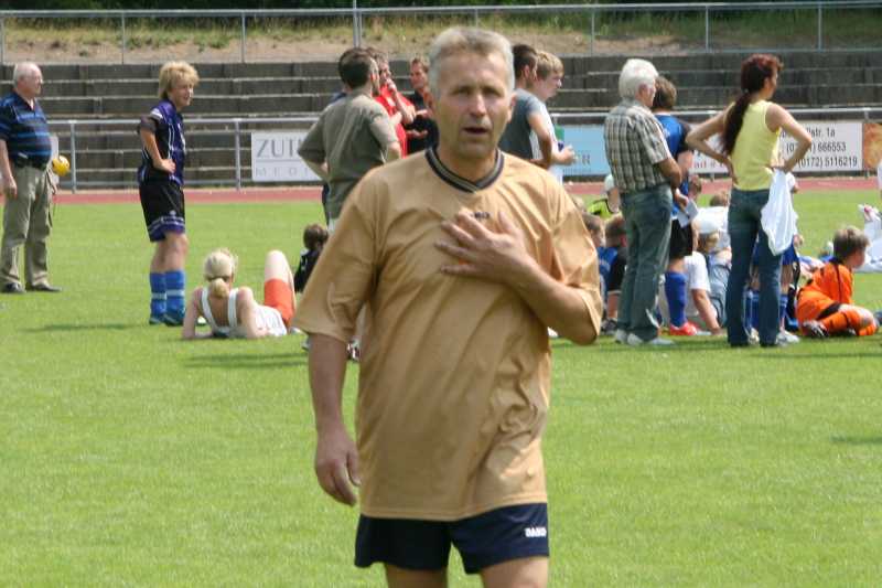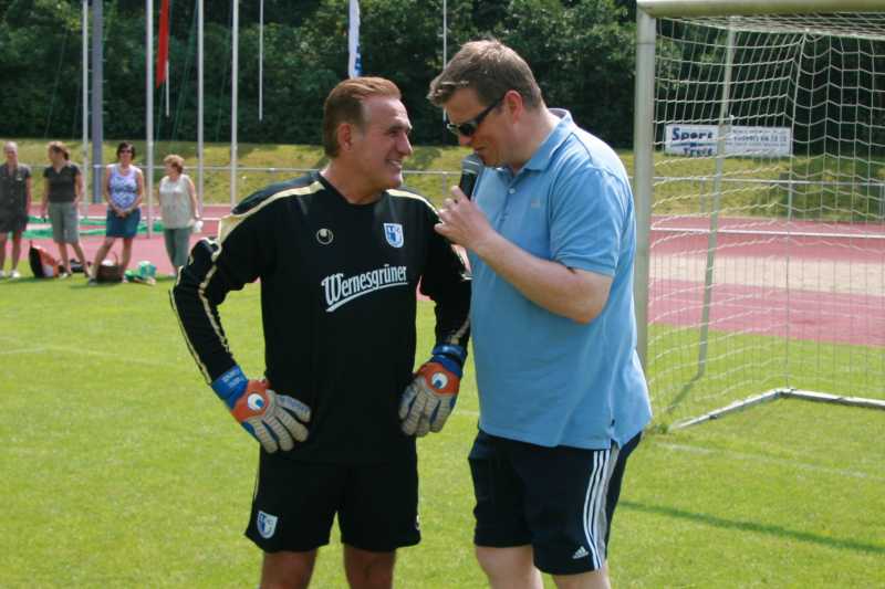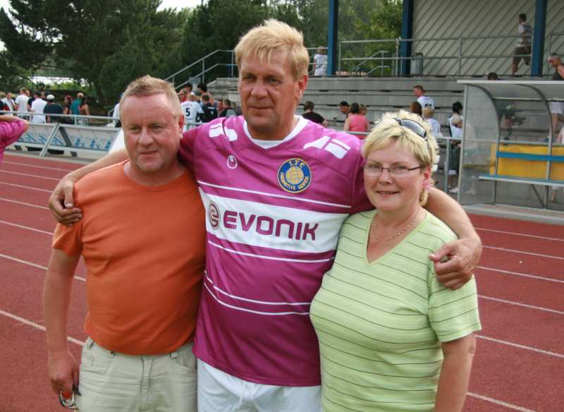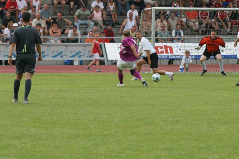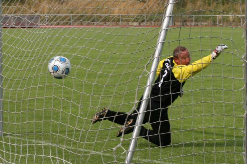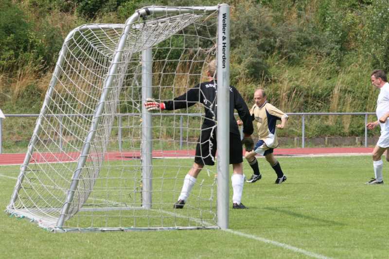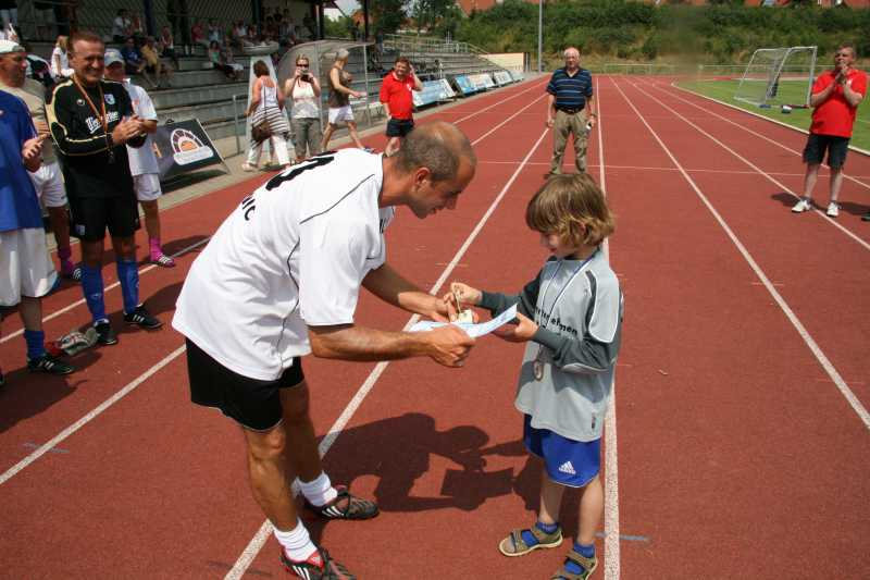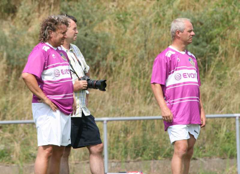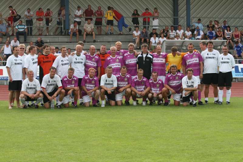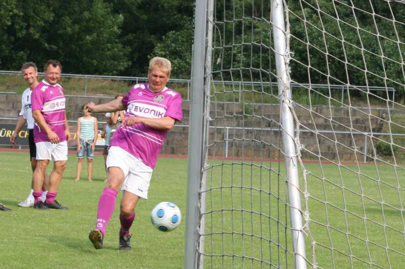 Und was im MüritzCOMP-Cup-Finale auf den Platz lief, da konnte der Fußballfan nur mit der Zunge schnalzen. Lok hatte in diesem Jahr den ehemaligen Torschützenkönig der DDR-Oberliga Dieter Kühn, der am Turniertag seinen 53. Geburtstag feierte, mitgebracht. Immer wieder angetrieben von den filigranen Fußballern Frank Baum und Uwe Ferl, unterstützt vom trickreichen Heiko Scholz wollte man dem deutlich jüngeren Widerpart Paroli bieten, der auf dem glänzend präparierten Rasen des Müritzstadions mit klangvollen Namen auflief: Paule Beinlich, Hilmar Weilandt und Jens Dowe zeigten mehrfach Proben ihres überragenden Könnens. Unterstützt wurden sie von Volker Röhrich, Bernd Arnold, Maik Bullerjahn, Gernot Alms und Frank Rillich. Diese Aufstellung hätte vor noch garnicht so langer Zeit das Ostseestadion ziemlich gefüllt.