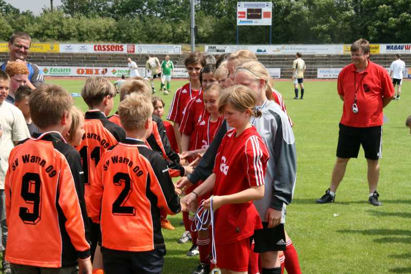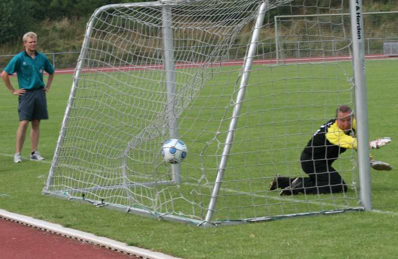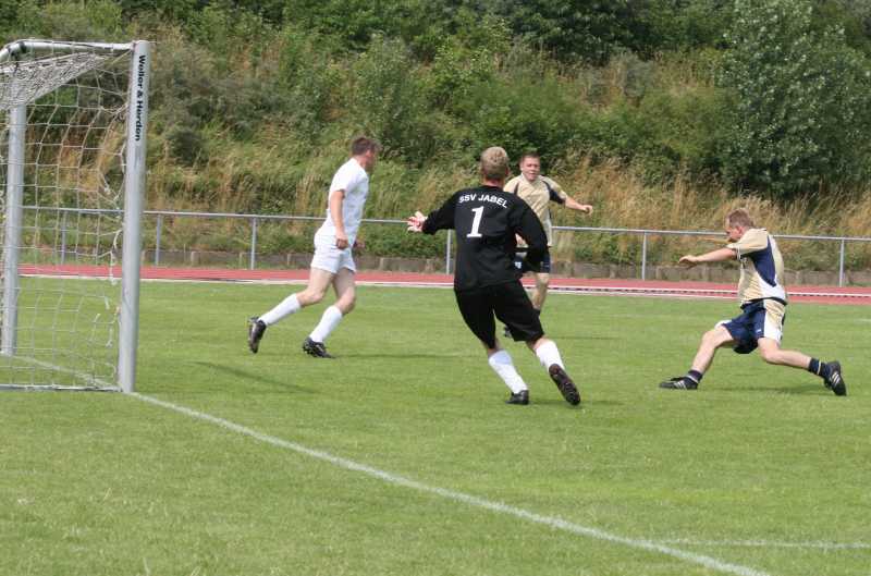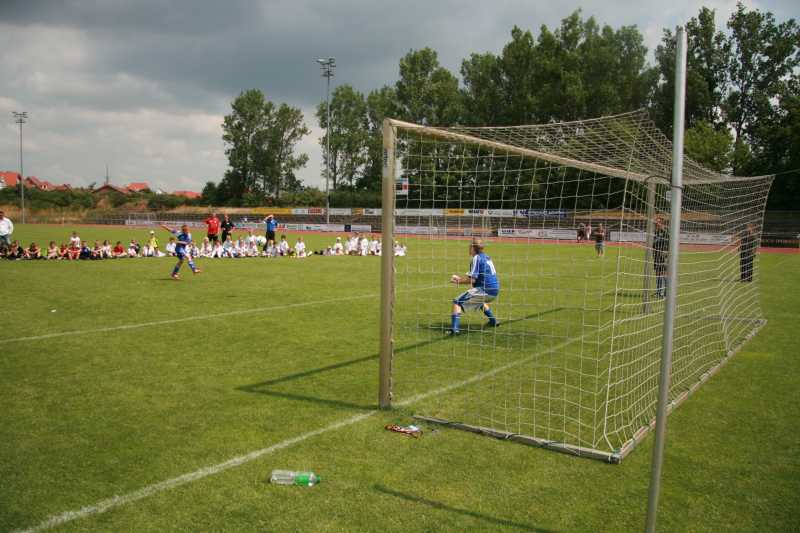 Dort prägte erstmal die Taktik das Spiel. Keiner wollte die Abwehr öffnen und war zunächst auf Sicherheit bedacht. Nach der Rostocker Führung legte Lok aber die Zurückhaltung ab und glich zwei Minuten nach dem Führungstreffer durch Rene Schmidt aus. Beim Neunmeterschießen konnte der beste Torwart des Turniers, der Leipziger Rene Koslowski, alle Rostocker Neunmeter halten. Die Leipziger Routiniers hingegen verwandelten ihre Schüsse vom Punkt nach dem gleichen Strickmuster sicher.