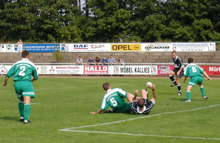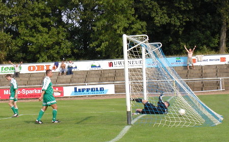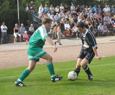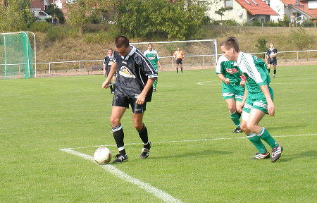 Das war der erste Rückstand unserer Mannschaft in der Verbandsliga. Bloßes Entsetzen im ganzen Stadion war angesagt. Aber!!!!! Die Mannschaft!!! konterte innerhalb von zehn Minuten. Nach einer hervorragenden Vorbereitung von Serhij Bohorodichenko konnten Andi Purlinski den Ausgleichstreffer in der 43. Minute erzielen. Zwei Minuten später zirkelte Sergeij einen Freistoß direkt in den Winkel zum 2:1 Führungstreffer. So ging es in die Pause.