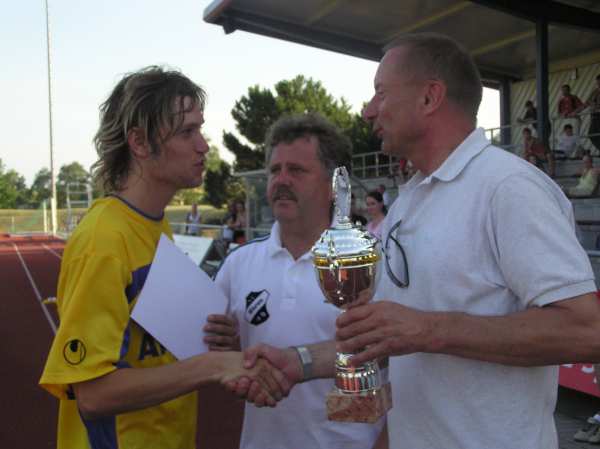 Das Finale sah anfangs den Favoriten in der Vorhand. Das 1:0 durch Manuel Lomoth war Ausdruck der überlegenen Spielweise. Mit zunehmender Spieldauer übernahmen allerdings die Neustrelitzer Landesligisten die Initiative. So zog Marco Szibbat mit einem unwiderstehlichen Antritt an seinen Schweriner Gegnern vorbei und konnte nur durch ein klares Foul im Strafraum am Torschuss gehindert werden. Es bewahrheitete sich allerdings wieder einmal die alte Fußballweißheit, dass der gefoulte Spieler den Strafstoß nicht schießen sollte. Der Schuss war zwar garnicht so schlecht und genau in die untere linke Ecke platziert, aber der Schweriner Torwart Paul Kornfeld konnte den Ball mit einem Riesenreflex um den Pfosten lenken. Dem Schweriner Torwart gebührt nicht nur wegen dieser Aktion ein Riesenlob. Einen nicht vergebenen Fair-Play-Preis hätte der junge Spieler auf jeden Fall verdient. Er korrigierte die Entscheidung des Schiedsrichters zu seinen Ungunsten, indem er eine Berührung des Balles bei einem Torschuss zugab. Der fällige Eckball führte dann fast zum Neustrelitzer Ausgleich. Das Aufbäumen der Neustrelitzer kam jedoch zu spät und die vergeben Chancen ließen keinen Torerfolg mehr zu. So gewann mit den Eintrachtlern aus Schwerin, die insgesamt beste Mannschaft auch das Turnier. |