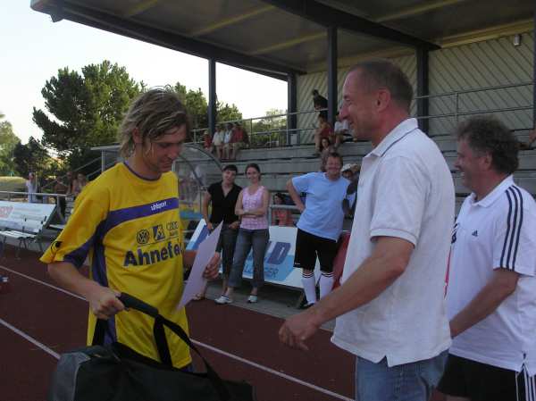 Das Spiel um Platz drei zeigte mehr oder weniger dem Wetter geschuldeten Sommerfußball. So kam es ohne Höhepunkte nach 30 Minuten zum Elfmeterschießen. Das hatte es allerdings in sich. 33 Schützen mussten antreten ehe der Sieger feststand. Sehr sichere Elfmeterschützen ließen den Torwarten kaum eine Abwehrchance. Und als mal ein Sievershäger Schütze verschoss, machte es ihm der Köpenicker Spieler nach. Erst als Daniel Daner über den Kasten schoss, war das Spiel zu Gunsten der Randrostocker entschieden.