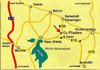 Groß Plasten rechts abbiegen ins Dorf hinein, ca. 500m geradeaus und auf der